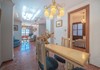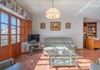 The kitchen and living area are bright and spacious. There is an office area/library and a covered terrace for dining.